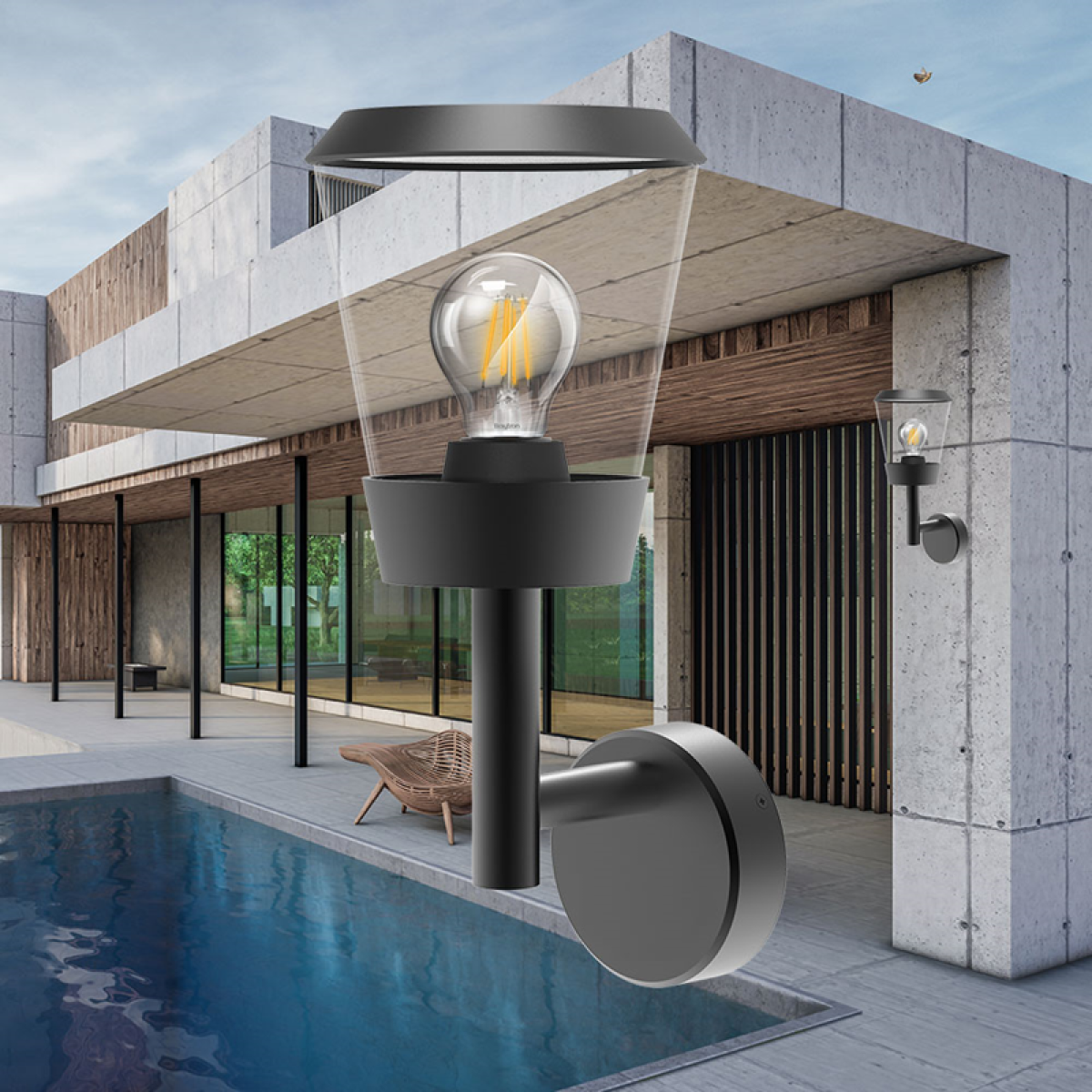 Επιτοίχιο Φωτιστικό Μάυρο Αλουμίνιου 1xE27 Με Αισθητήρα Braytron